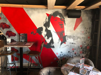Muurschilderingen zijn uniek, groots en een echte eyecatcher. Door het aanbrengen van Stencil art en graffiti rechtstreeks op de muur creëert Egbert een strak en robuust effect.
