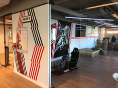 De naam zegt het al; een kunstwerk op de muur of grond maken met behulp van diverse soorten tape. Deze relatief onbekende street art techniek pas ik toe in vrij werk of om de huisstijl terug te laten komen als muurdecoratie in je organisatie.